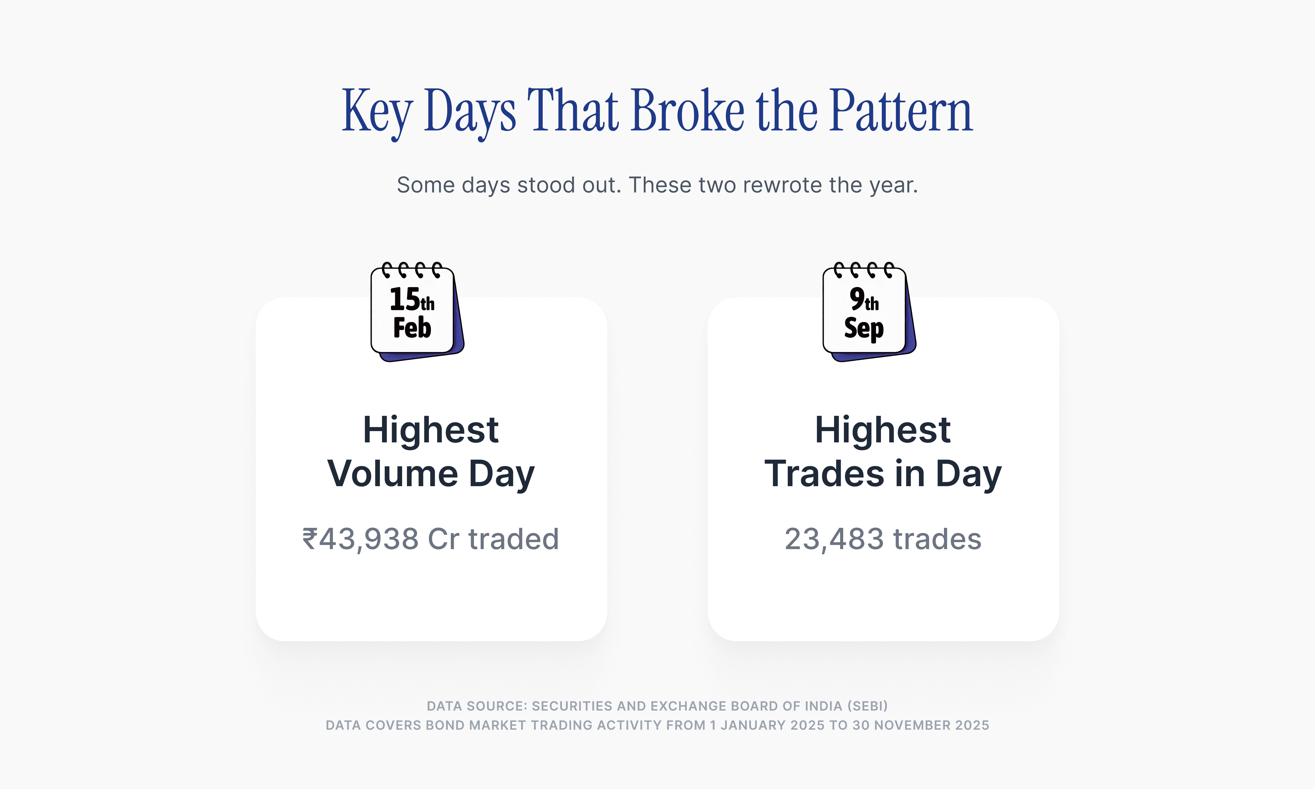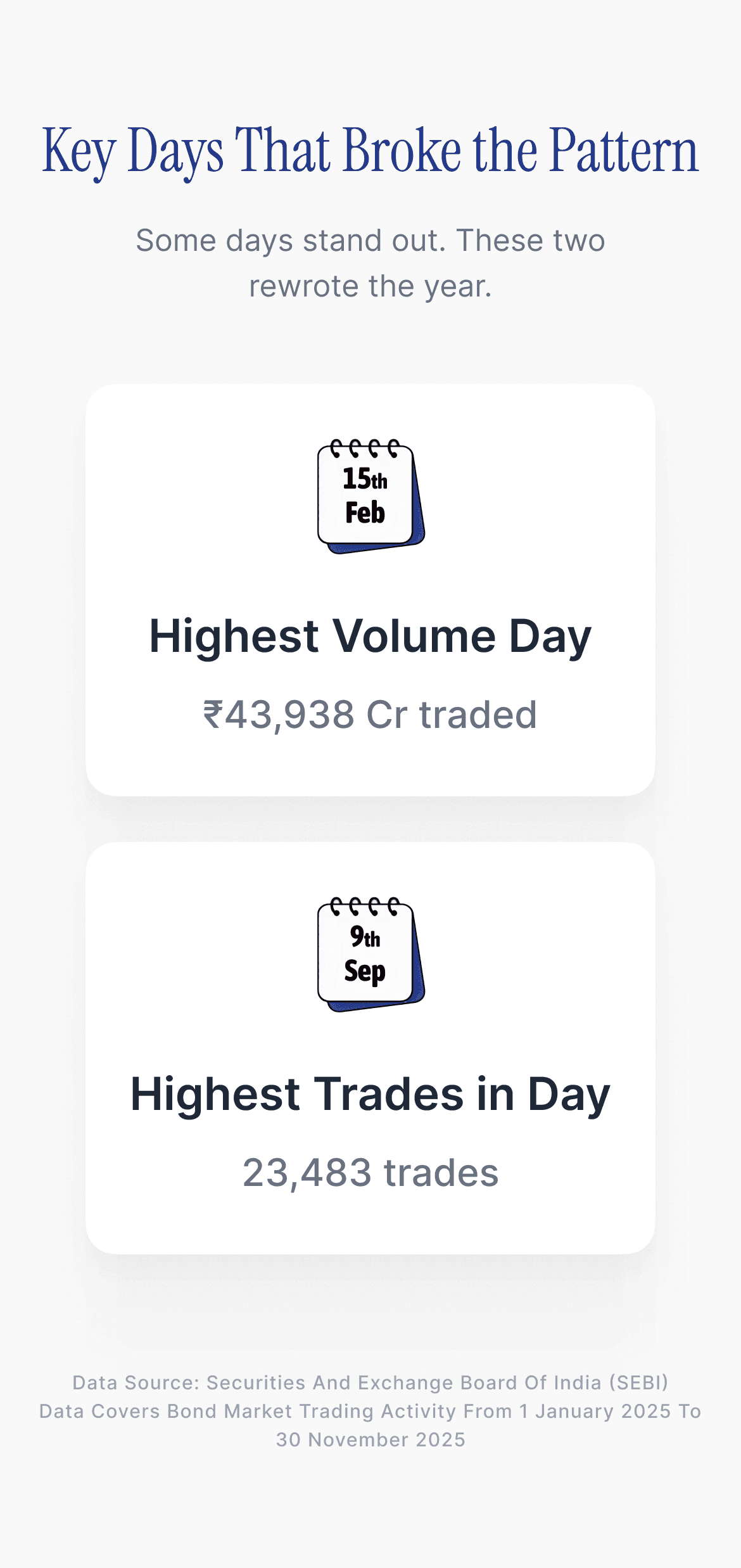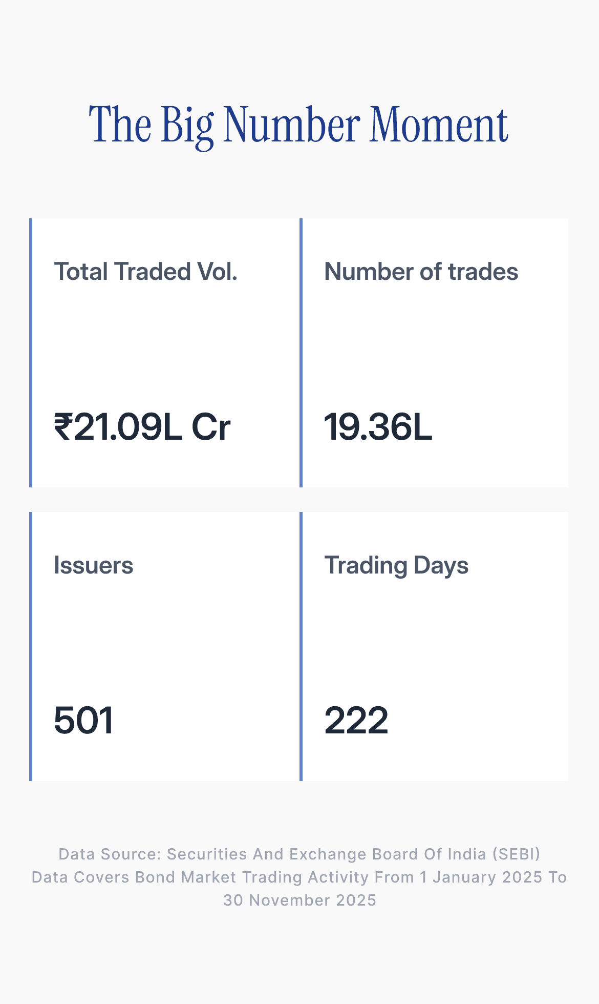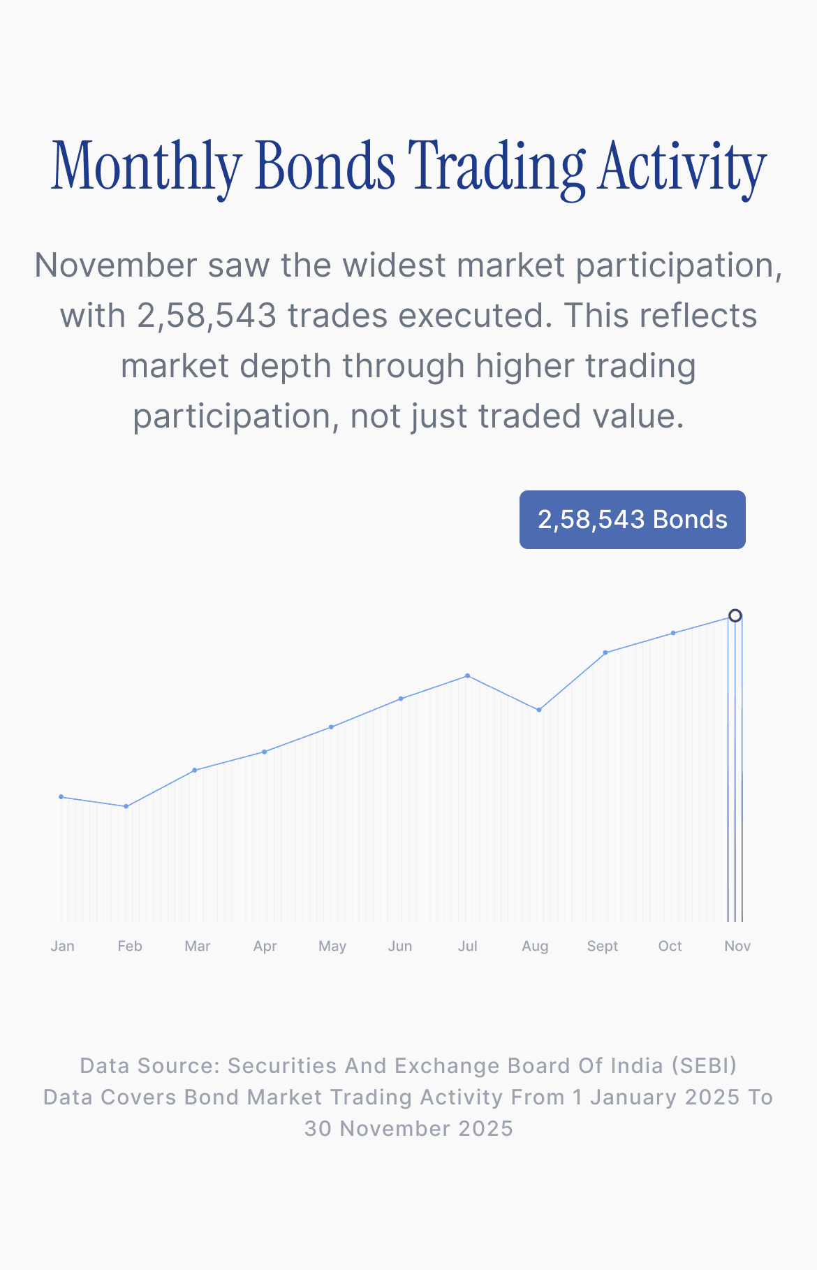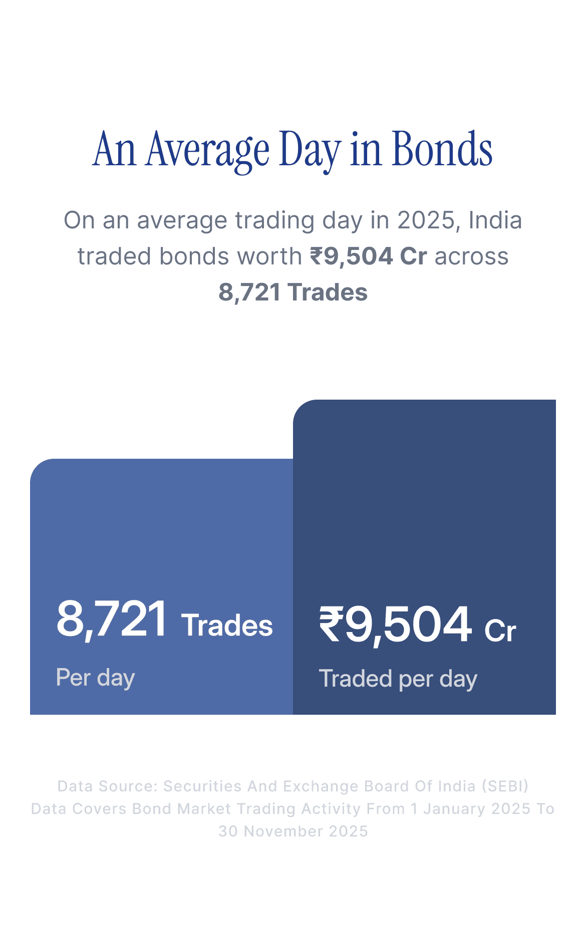 The information presented on this page is for educational and informational purposes only. The data has been compiled using publicly available bond market trading information sourced from the Securities and Exchange Board of India (SEBI).